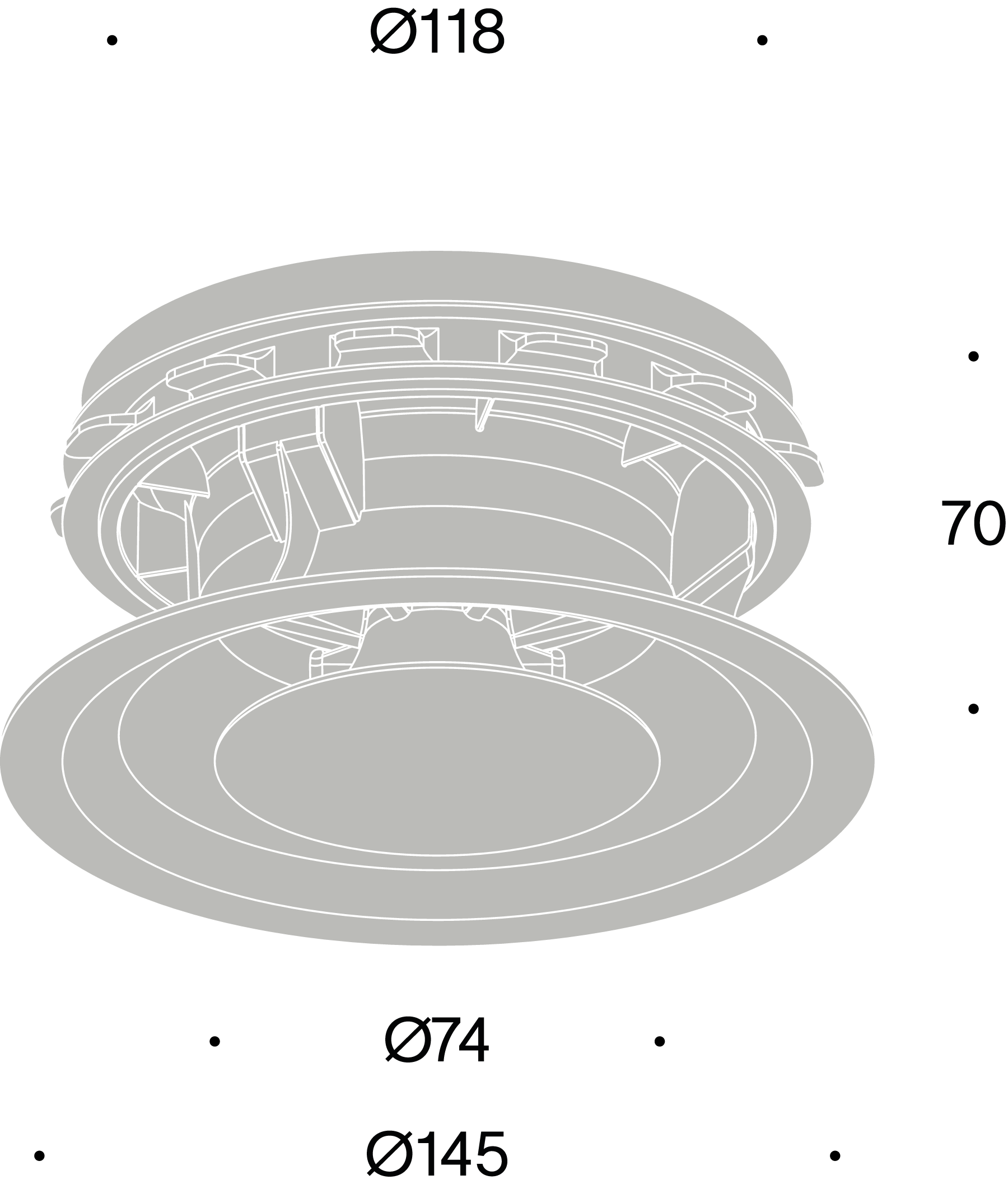 This accessory enables the installation of the pradovent trim Ø125 in gypsum ceilings when connecting to Ø125 flexible ducts.