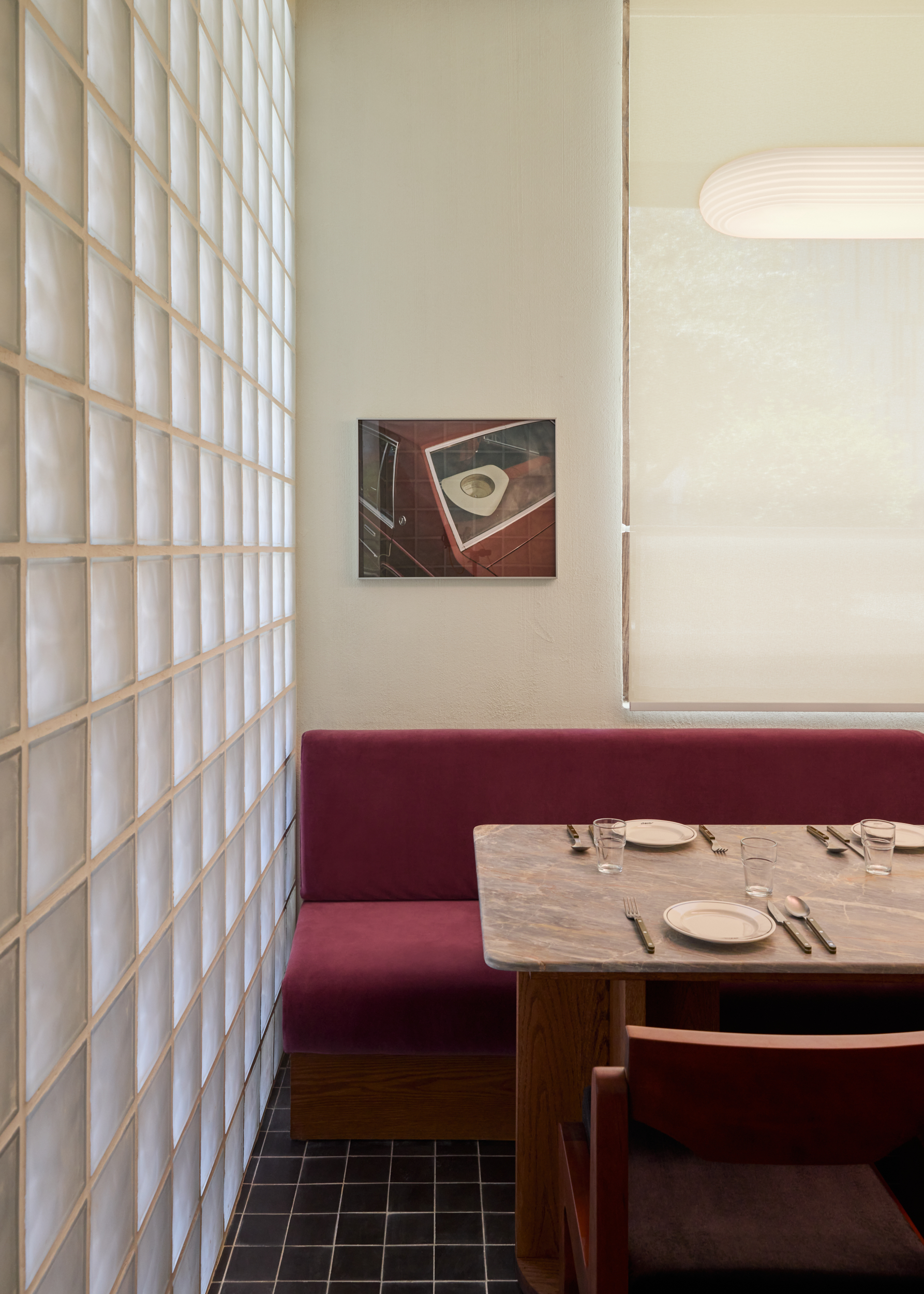 prado’s invisible lighting blends into the architectural framework, allowing the material palette to take centre stage. The result is a space that feels timeless, defined by restraint and intimacy.