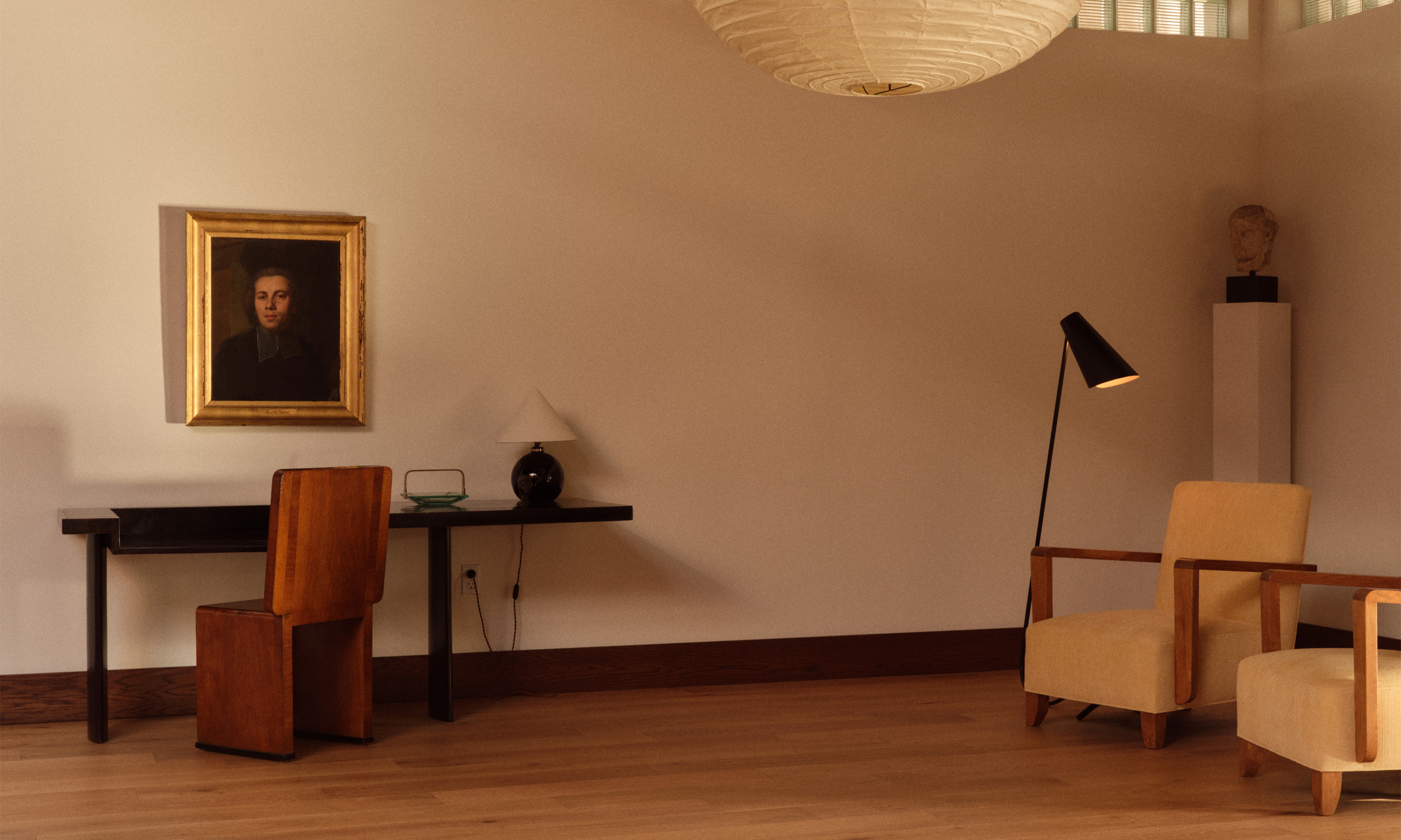 Furniture and art are assembled through intuition rather than signature. Pieces from the 20th century — marked by use and time — coexist in a setting where wear, texture and imperfection are embraced as part of their value.